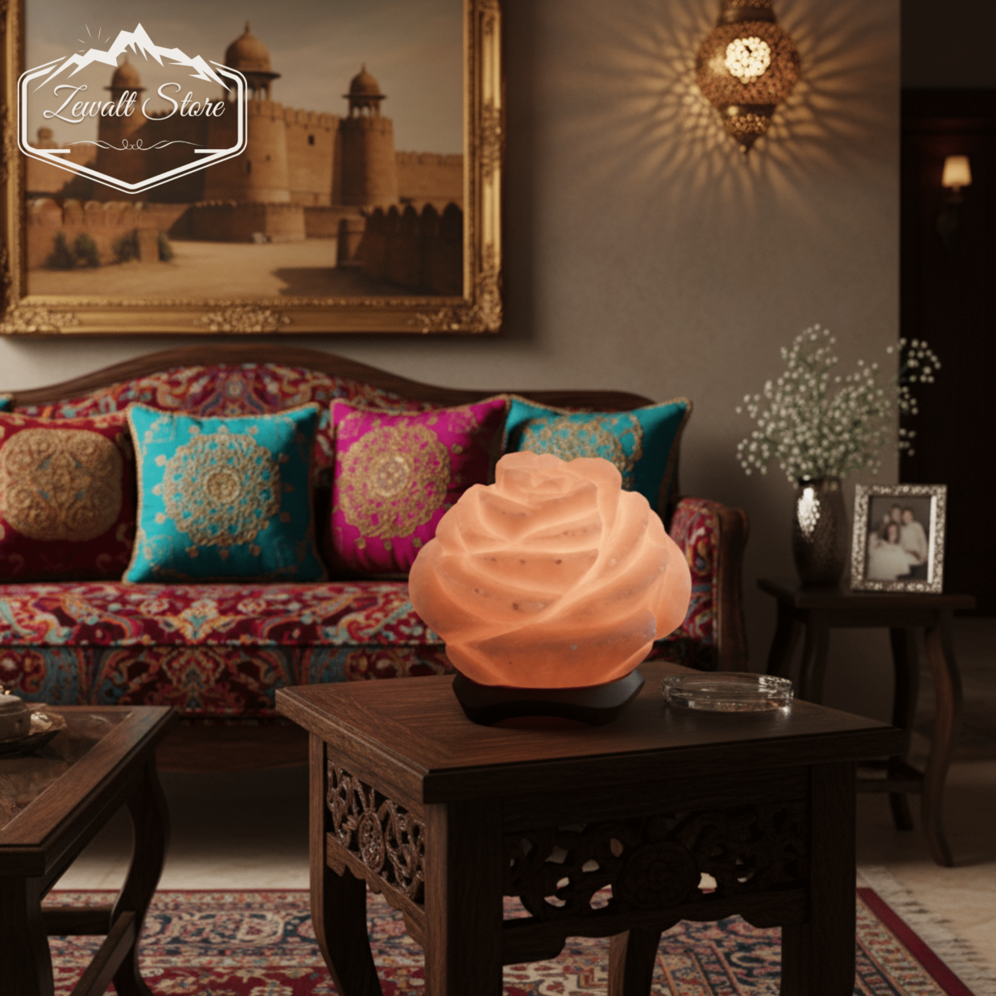 Enhance your room’s beauty with this elegant Flower Shaped Himalayan Pink Salt Lamp, handcrafted from 100% natural Himalayan salt.