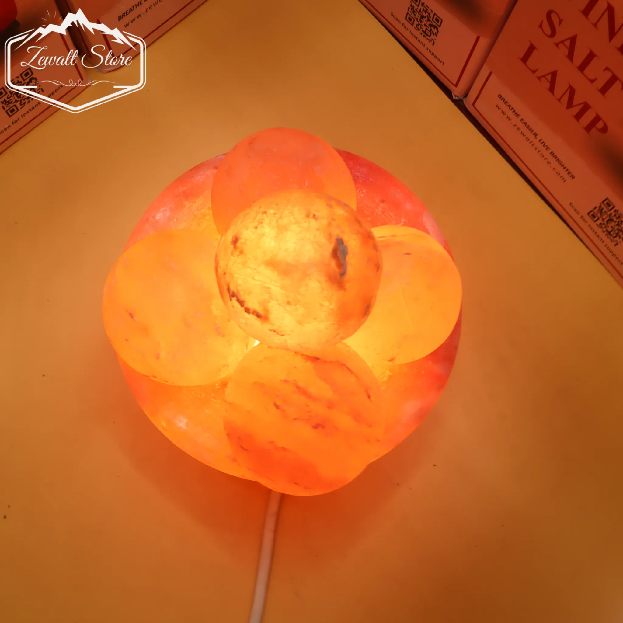 The lamp operates on 220V power and uses a filament bulb, emitting a warm and soothing glow that enhances the ambiance of your home, office, spa, or meditation area. The included 5 Himalayan salt massage balls can be gently warmed and used to relax tired muscles, making this product both decorative and functional.