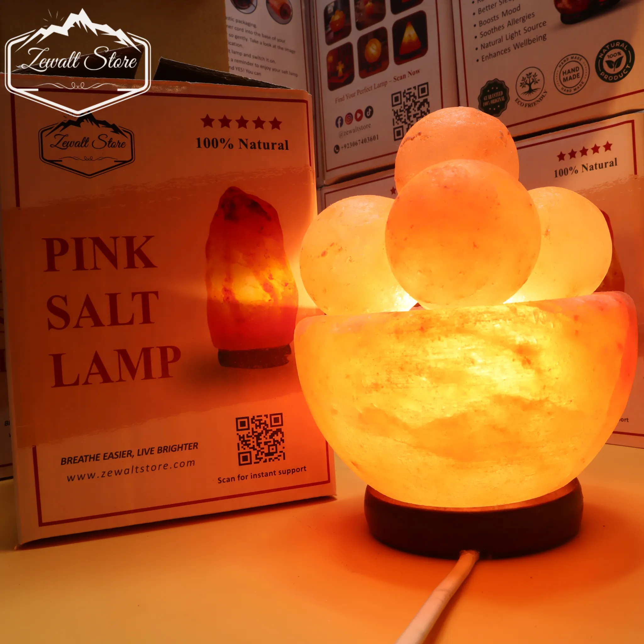 Bring natural beauty and wellness into your space with our Bowl Shaped Himalayan Pink Salt Lamp with 5 Massage Balls. This premium lamp is handcrafted from 100% original Himalayan pink salt crystals, carefully shaped into an elegant bowl design and placed on a solid wooden base for stability and style.