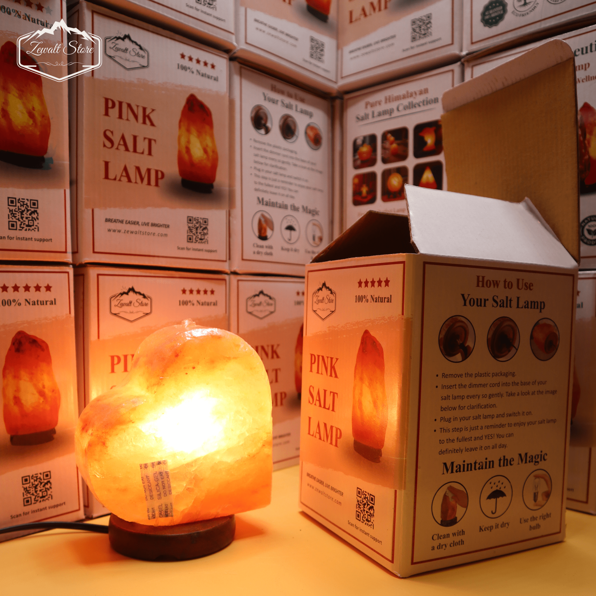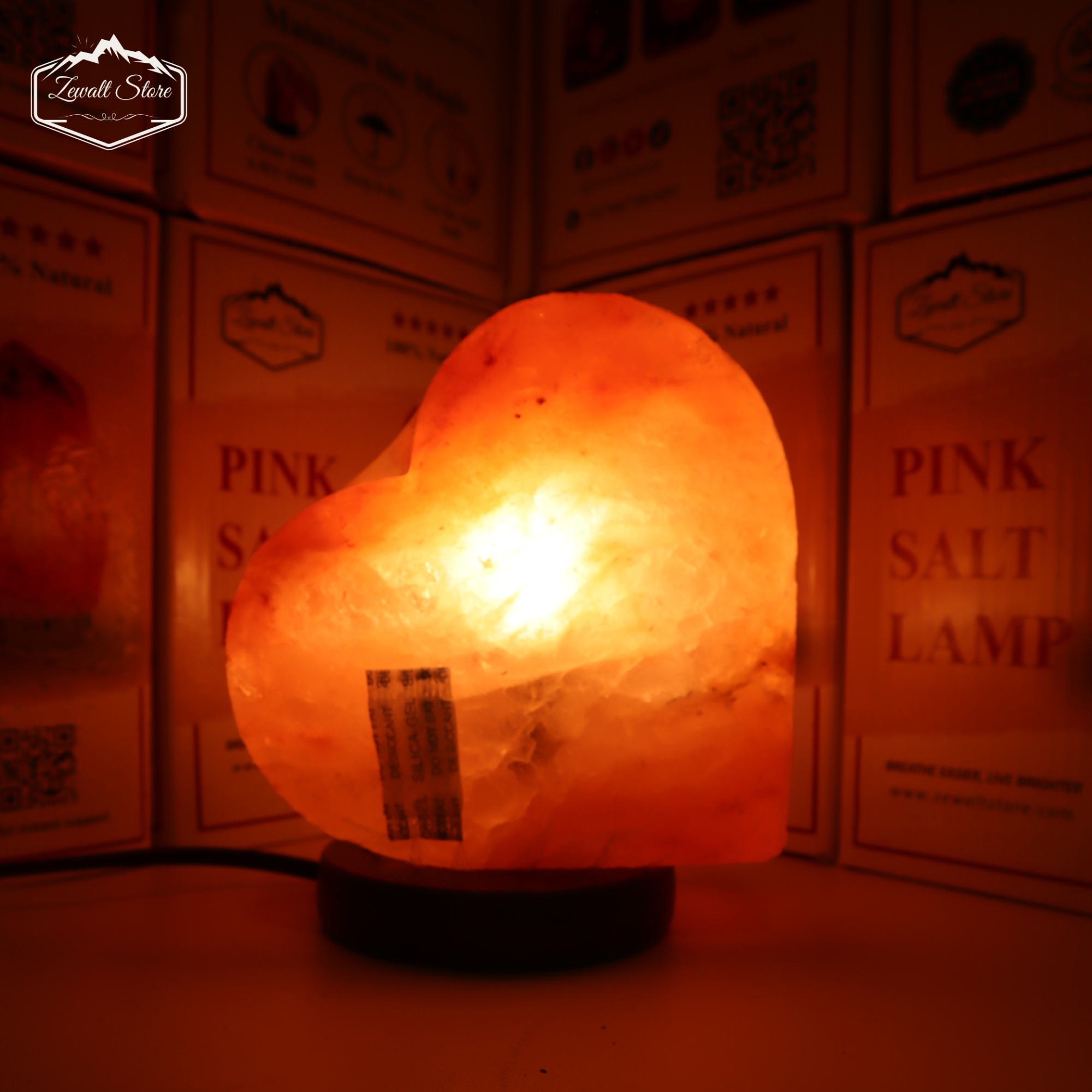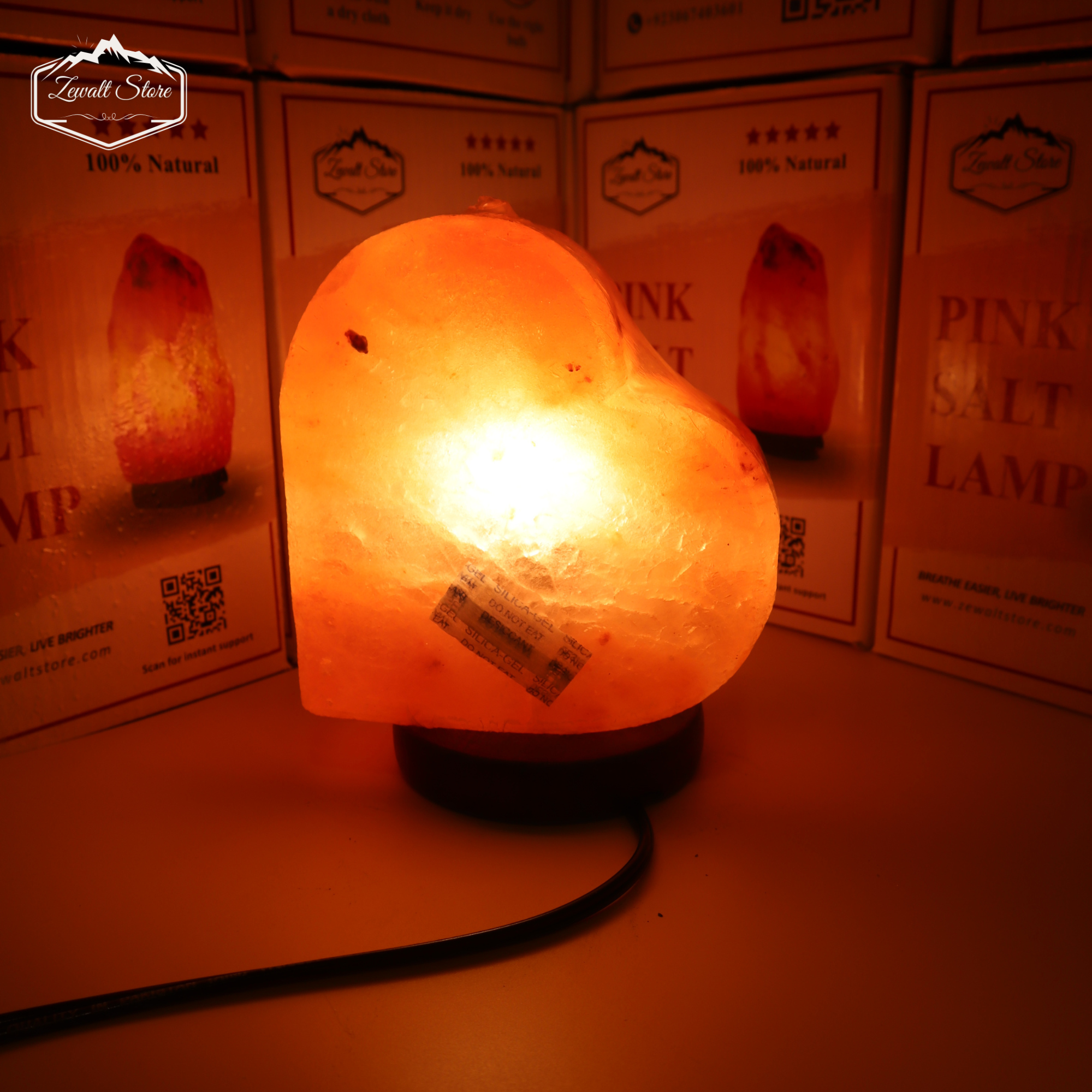 - 1 × Heart Shaped Himalayan Pink Salt Lamp with Wooden Base