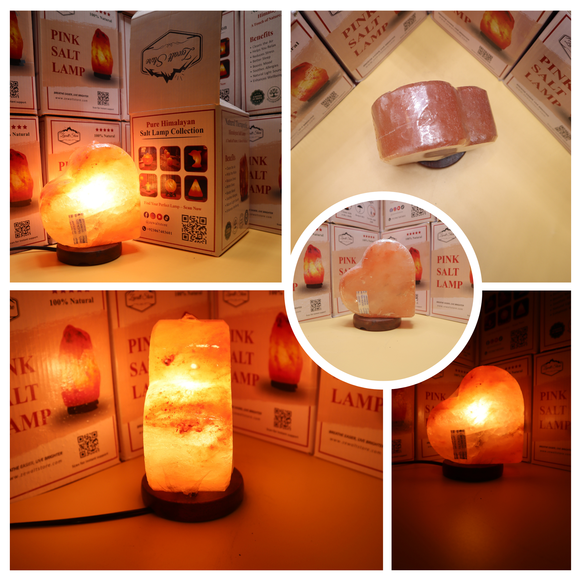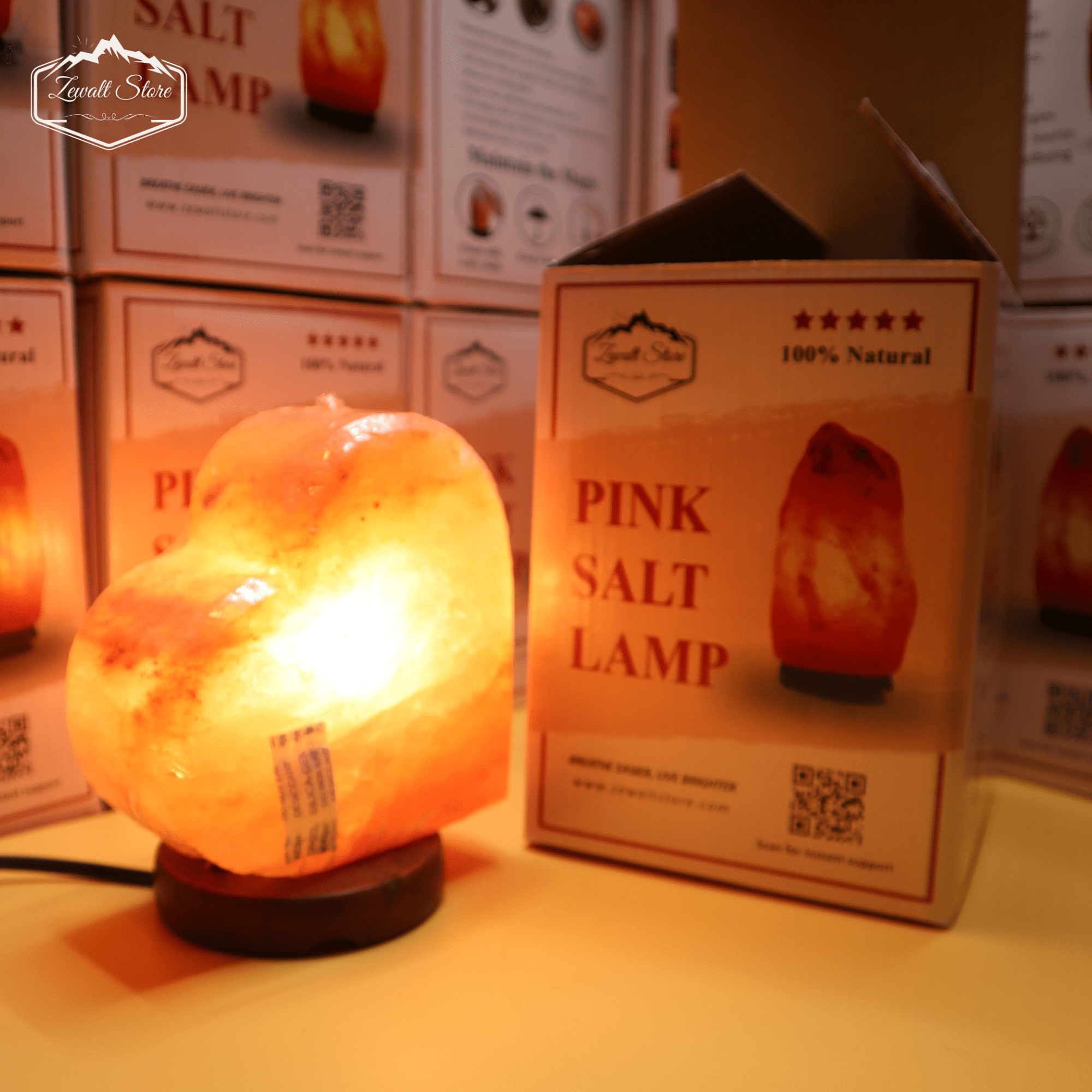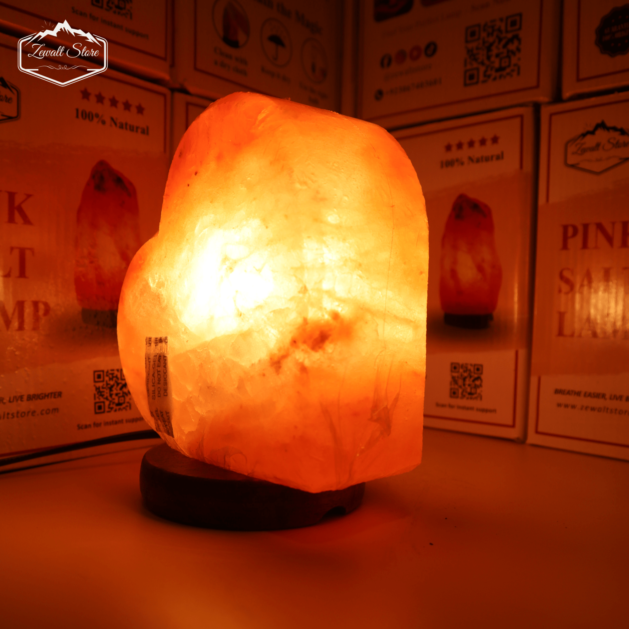 - 1 × Heart Shaped Himalayan Pink Salt Lamp with Wooden Base