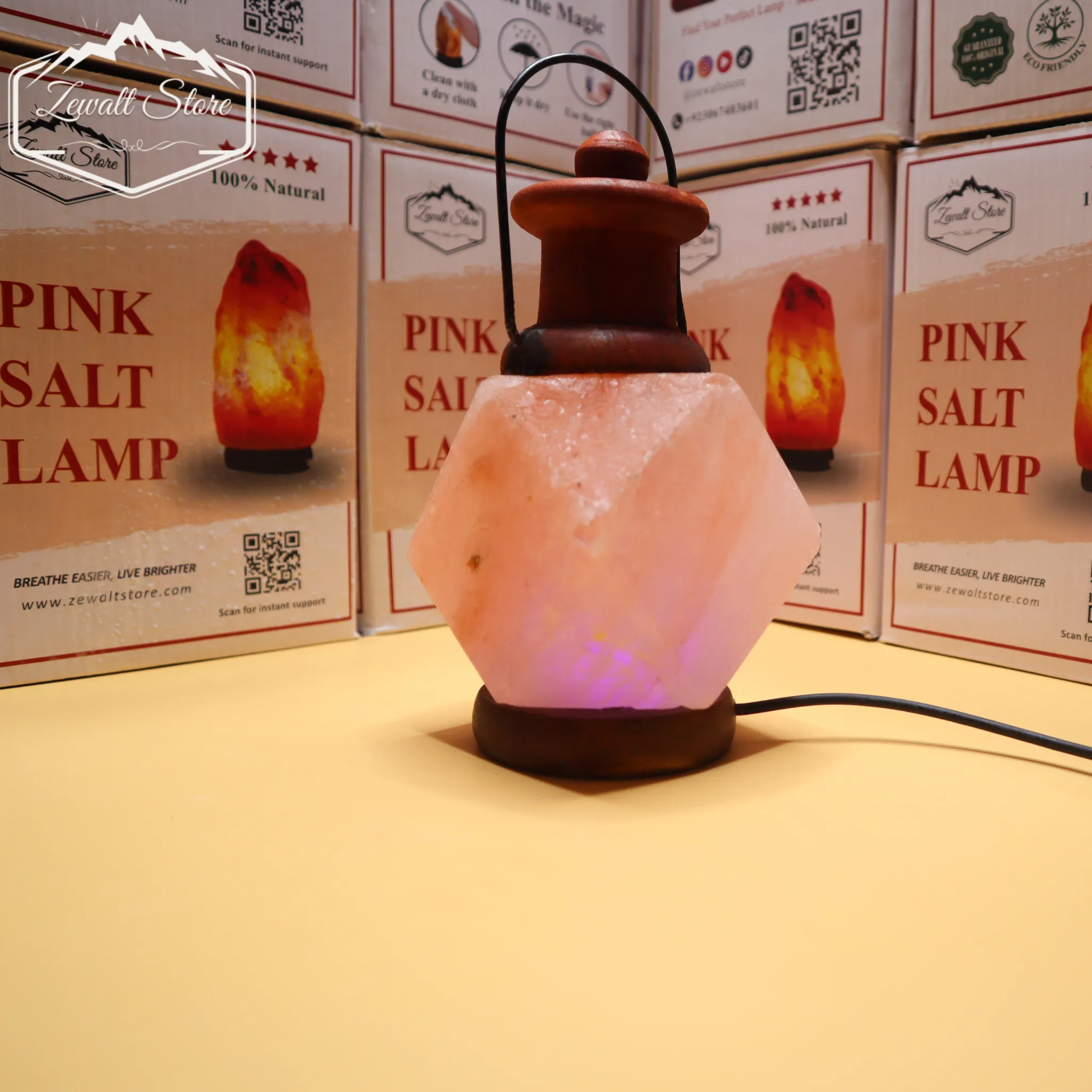 Lantern Shaped USB Himalayan Pink Salt Lamp – Approx. 1 KG | RGB Crystal Desk Lamp