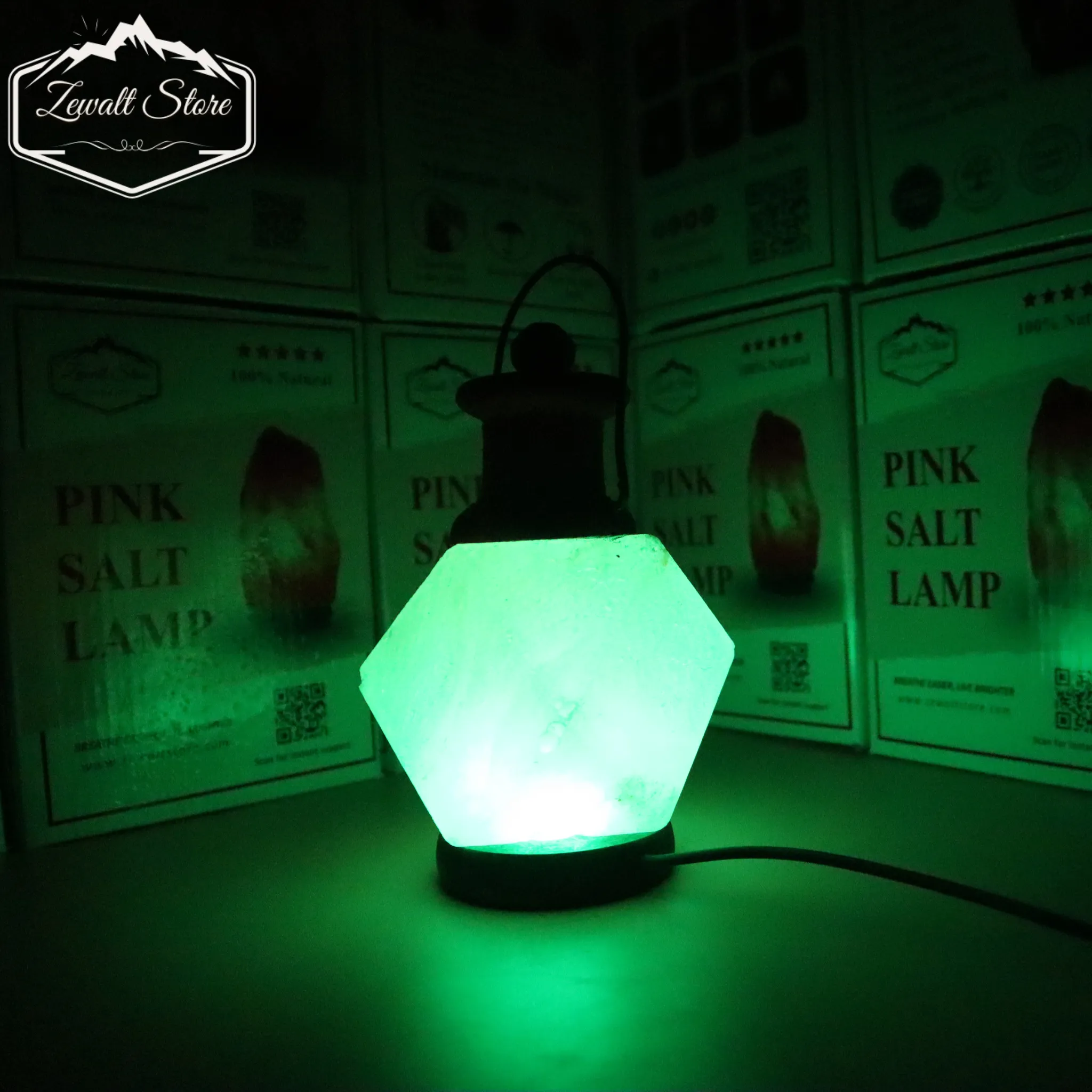 The Lantern Shaped USB Himalayan Pink Salt Lamp is a stylish decorative lamp made from 100% natural Himalayan pink salt crystal. Featuring a unique lantern design and RGB LED auto color-changing light, this USB-powered lamp creates a soothing ambiance. With an approximate weight of 1 KG, it is ideal for bedrooms, desks, offices, meditation corners, spas, and gifting purposes.